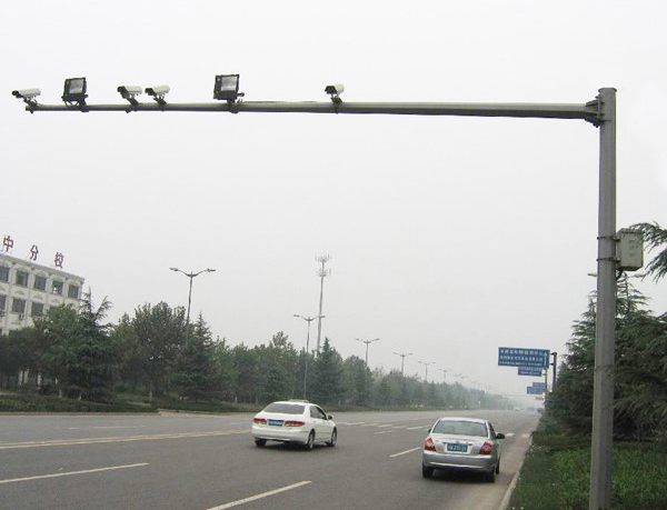 垂直度檢驗(yàn):電子警察監(jiān)控立桿直立后,使用經(jīng)緯儀對桿的兩向垂直度作檢驗(yàn),垂直度偏差1.0≤%。