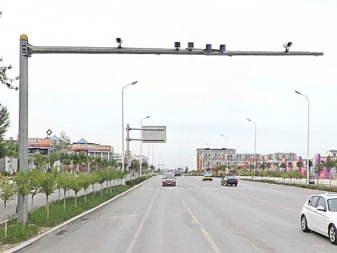 道路監(jiān)控桿也稱監(jiān)控桿與監(jiān)控立桿,立桿要求攝像機離地面高度一般不低于5米,挑臂長度3~5米,立桿下端管徑應在220 mm±10mm、上端管徑應在120 mm±5mm,管壁厚度應≥6mm,表面防腐、抗臺風。立桿基礎深度不低于1.5米,基礎直徑大于1米,采用混凝土灌筑,以確保立桿的牢固度。